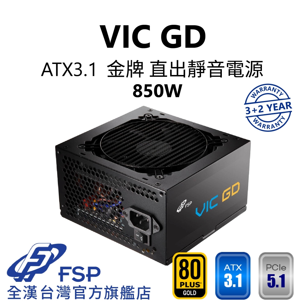 全漢 VIC GD 850W 雙8/金牌/直出線/ATX3.1/壓紋線/3+2年(憑發票)