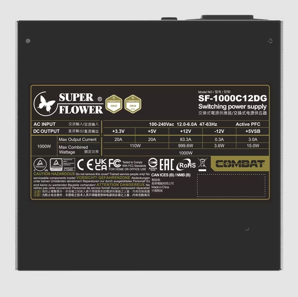 振華 COMBAT DG 1000W 雙8/金牌/直出線/ATX3.1(PCIe 5.1)/主日系/7年保