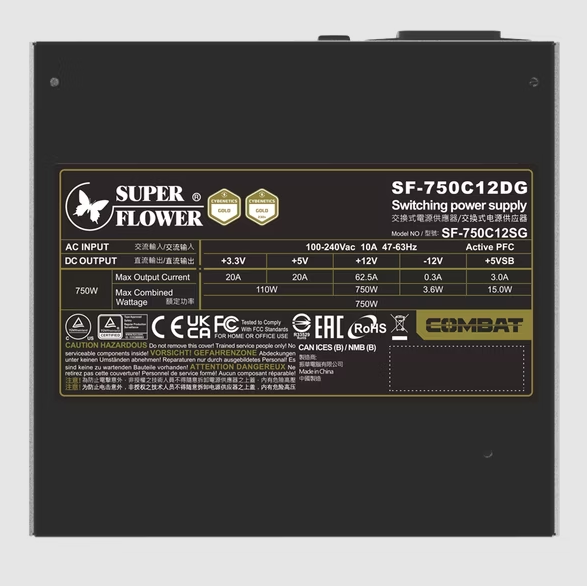 振華 COMBAT DG 750W 雙8/金牌/直出線/ATX3.1(PCIe 5.1)/主日系/7年保