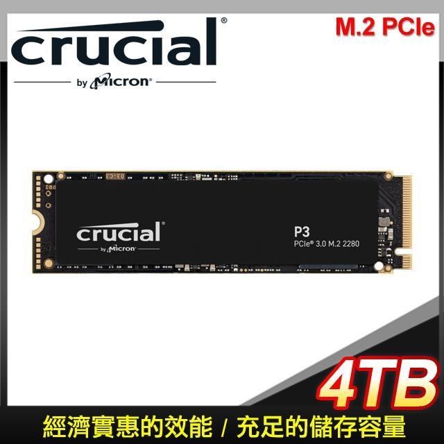 美光 Micron Crucial P3 4TB/Gen3/讀:3500M/寫:3000M/3D QLC顆粒/五年
