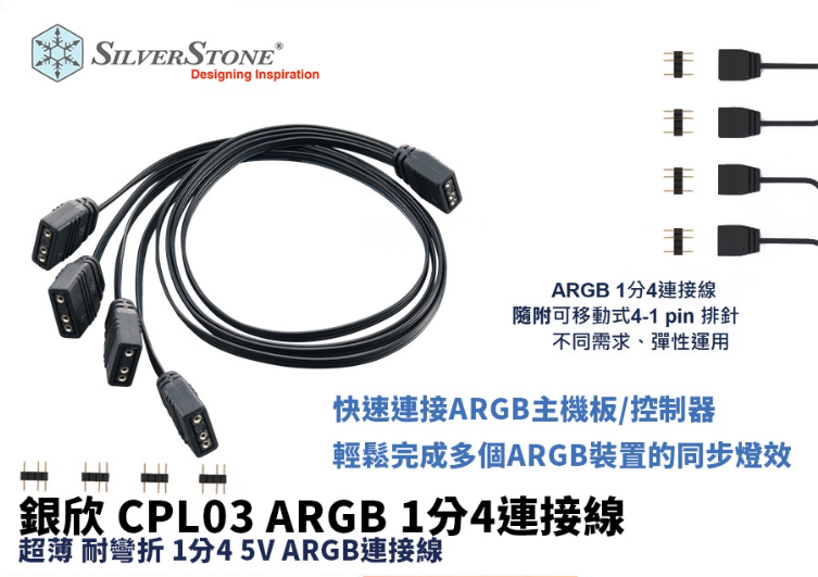 銀欣 1轉3 PWM 風扇電源擴充線 100mm(SST-CPF02)