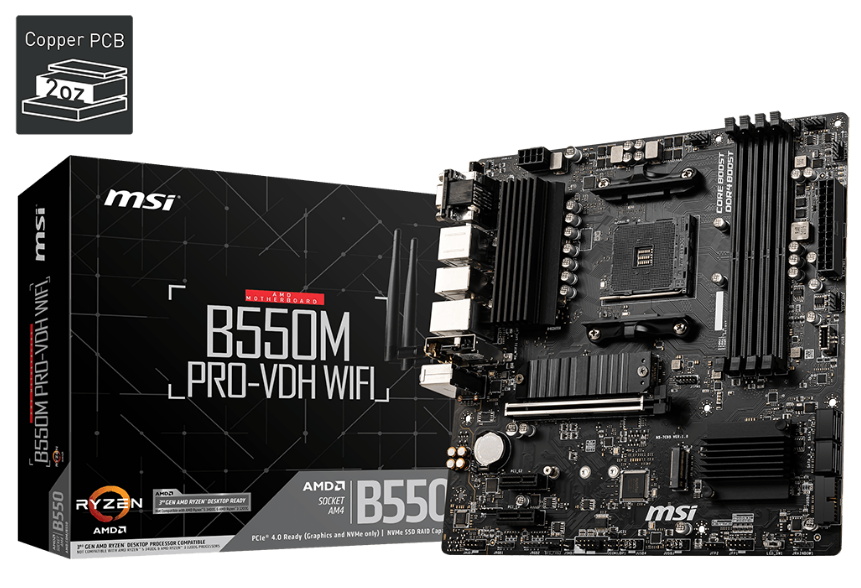 微星 B550M PRO-VDH WIFI(M-ATX/1A1H1P/Realtek LAN+ac/註四年)4+2+1相供電