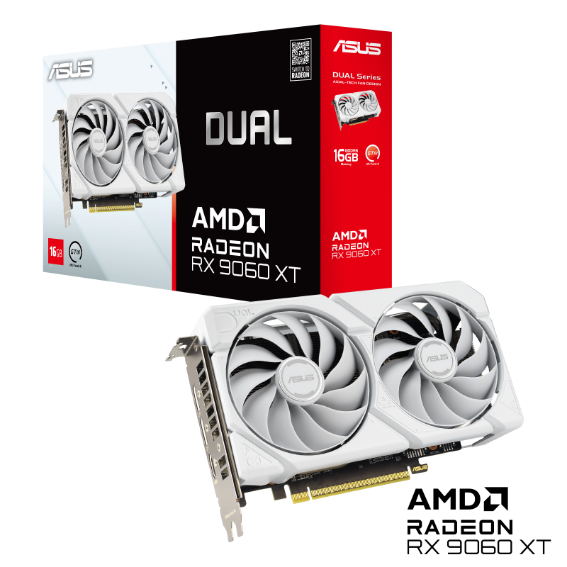 《任搭 ↘100》華碩 DUAL-RX9060XT-16G-WHITE(3250MHz/21cm/雙風扇/註冊四年保/白)