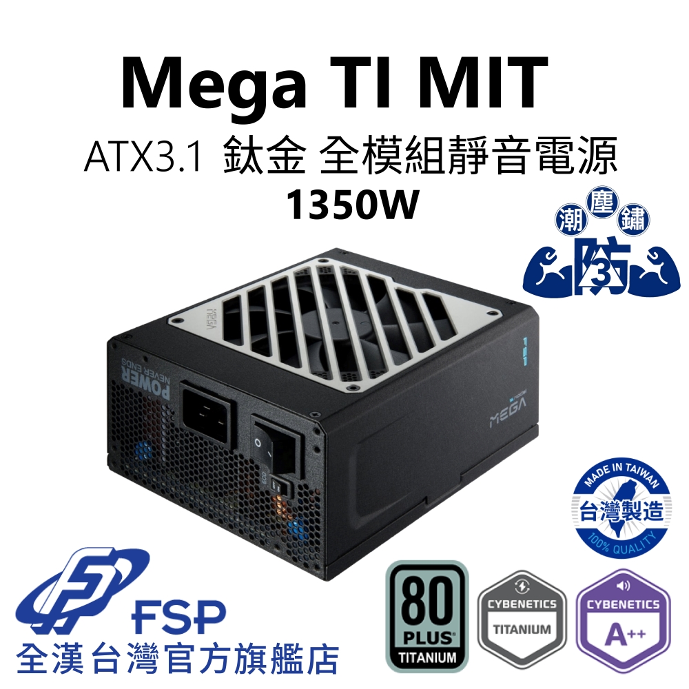 全漢 MEGA TI 1350W(MIT) 雙8/鈦金/全模/ATX3.1(雙PCIe 5.1)/主日系/防潮塗層/10年保