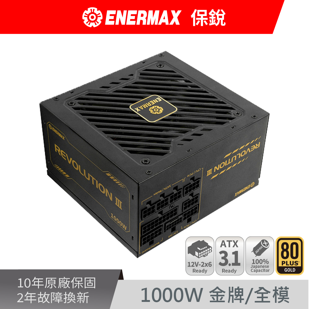 保銳 Revolution III 1000W 雙8/金牌/全模組/ATX3.1(PCIe 5.1)/全日系/10年