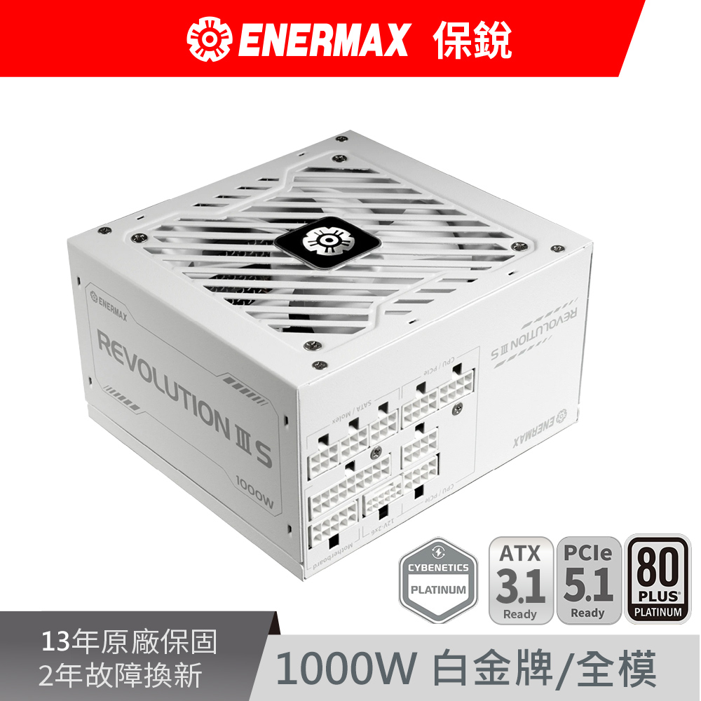 保銳 Revolution III S 1000W 白色 雙8/白金/全模/ATX3.1(PCIe 5.1)/全日系/13年保