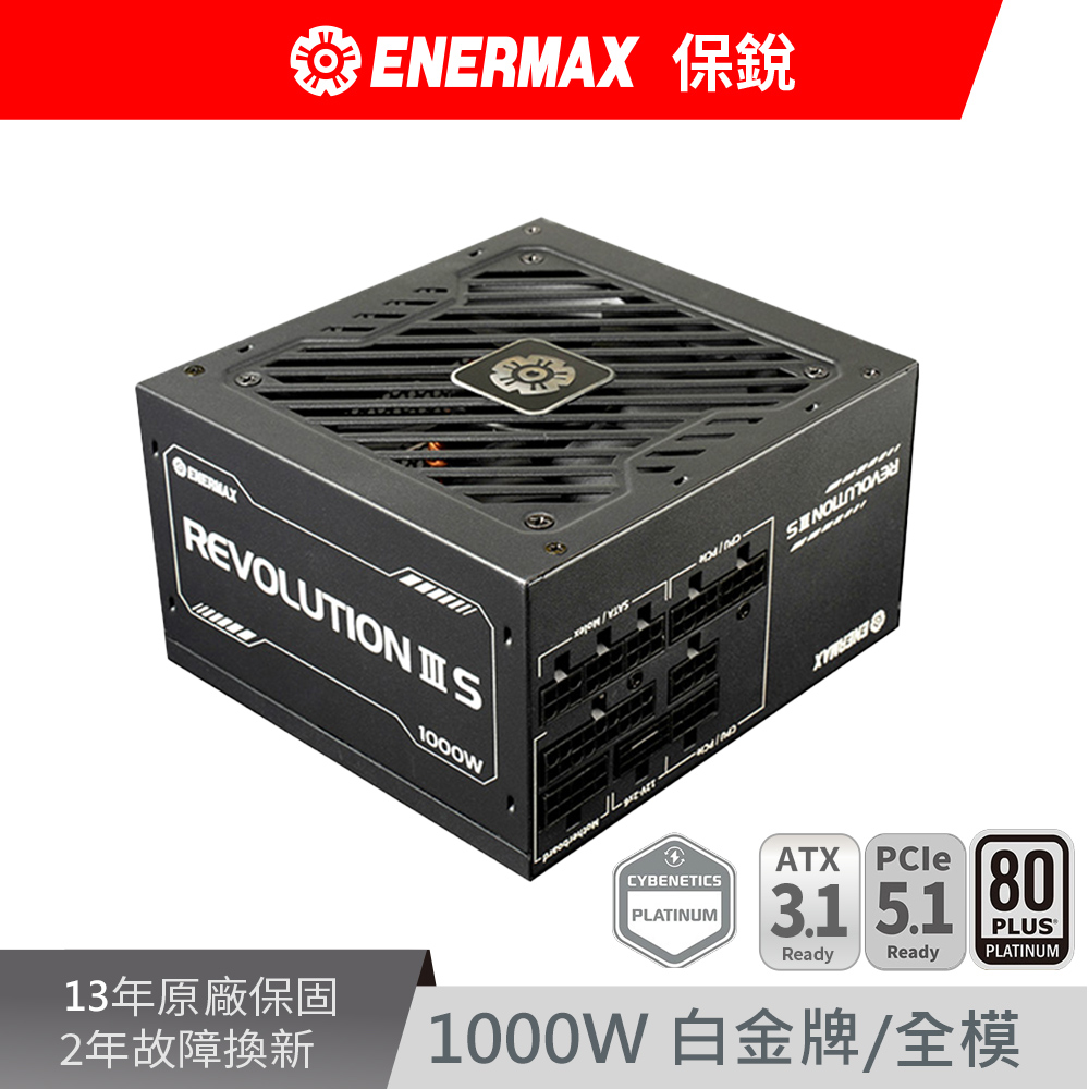 保銳 Revolution III S 1000W 黑色 雙8/白金/全模/ATX3.1(PCIe 5.1)/全日系/13年保
