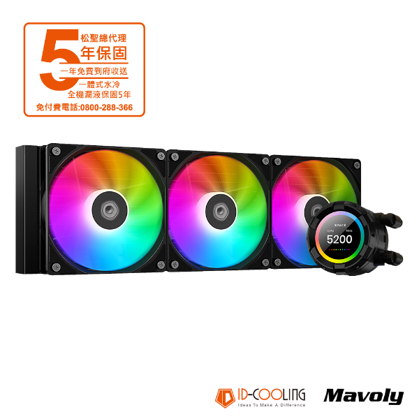 ID-COOLING SL360 XE 黑 水冷散熱器/2.1吋LCD/厚:5.4cm/5年