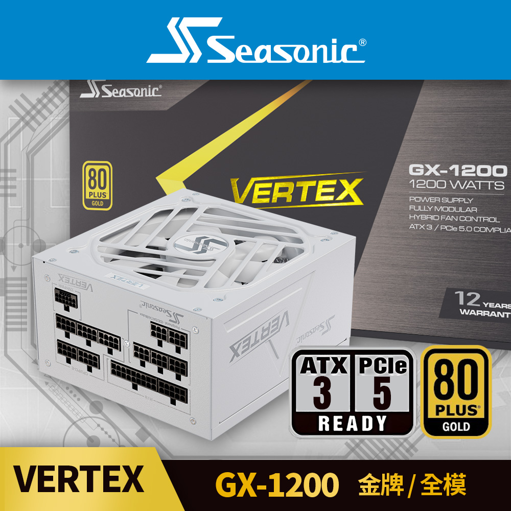 海韻 VERTEX GX-1200(1200W) 白色版 雙8/金牌/全模組/ATX3.1(PCIe 5.1)/12年保
