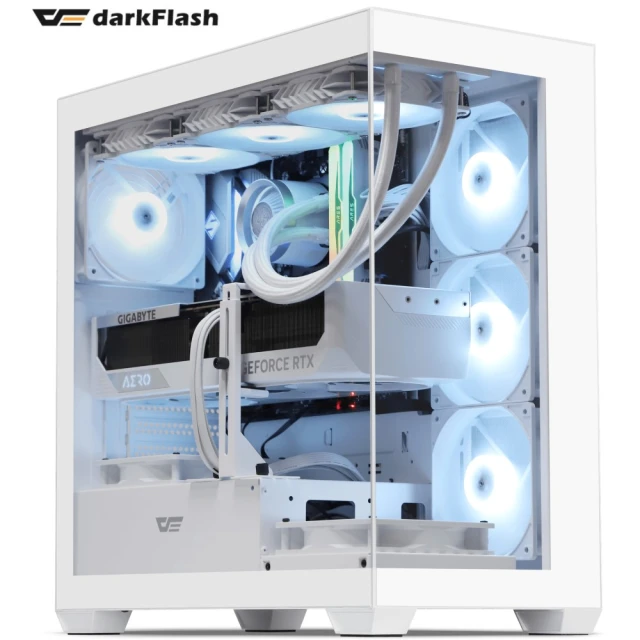 darkFlash DS900 白 顯卡長42.5/U高17/全景玻璃透側/ARGB風扇*4/含顯卡支架/ATX