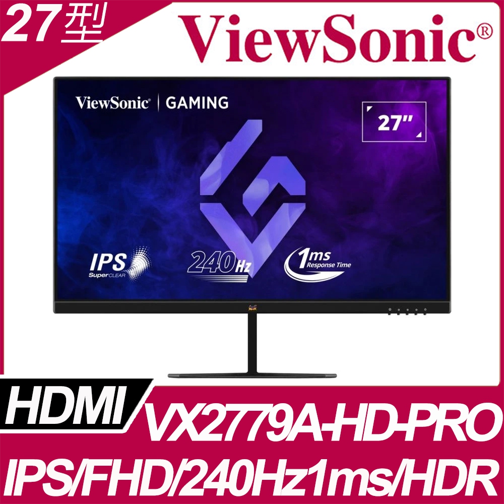 ViewSonic VX2779A-HD-PRO(2H1P/IPS/240Hz/HDR10/無亮點)電競顯示器