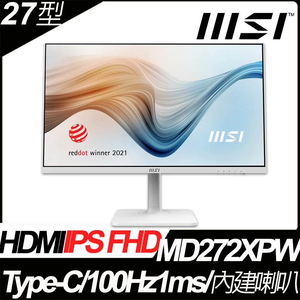 MSI Modern MD272XPW(1H1P1C/IPS/100Hz/含喇叭/白色)可升降旋轉顯示器