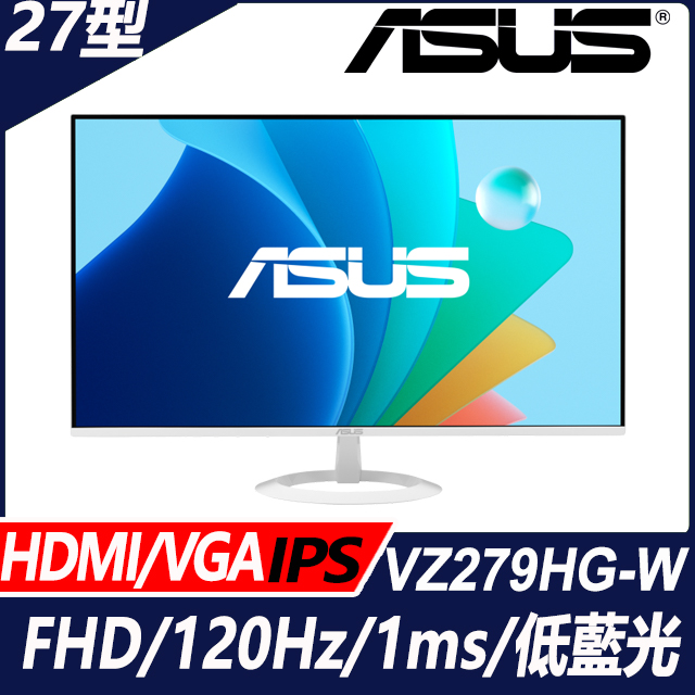 華碩 VZ279HG-W(1A1H/IPS/120Hz/白色)護眼顯示器