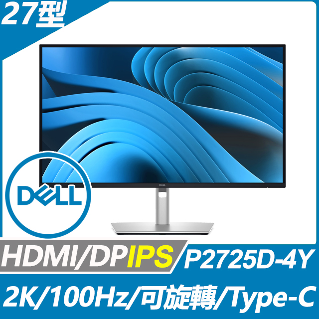DELL P2725D(1H1P/IPS/100Hz/無亮點/四年保)可升降旋轉顯示器