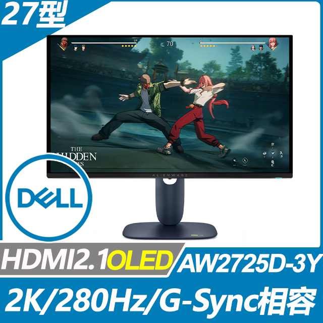 DELL Alienware AW2725D(2H1P/OLED/280Hz/HDR400/HDMI 2.1/無亮點)可升降旋轉顯示器