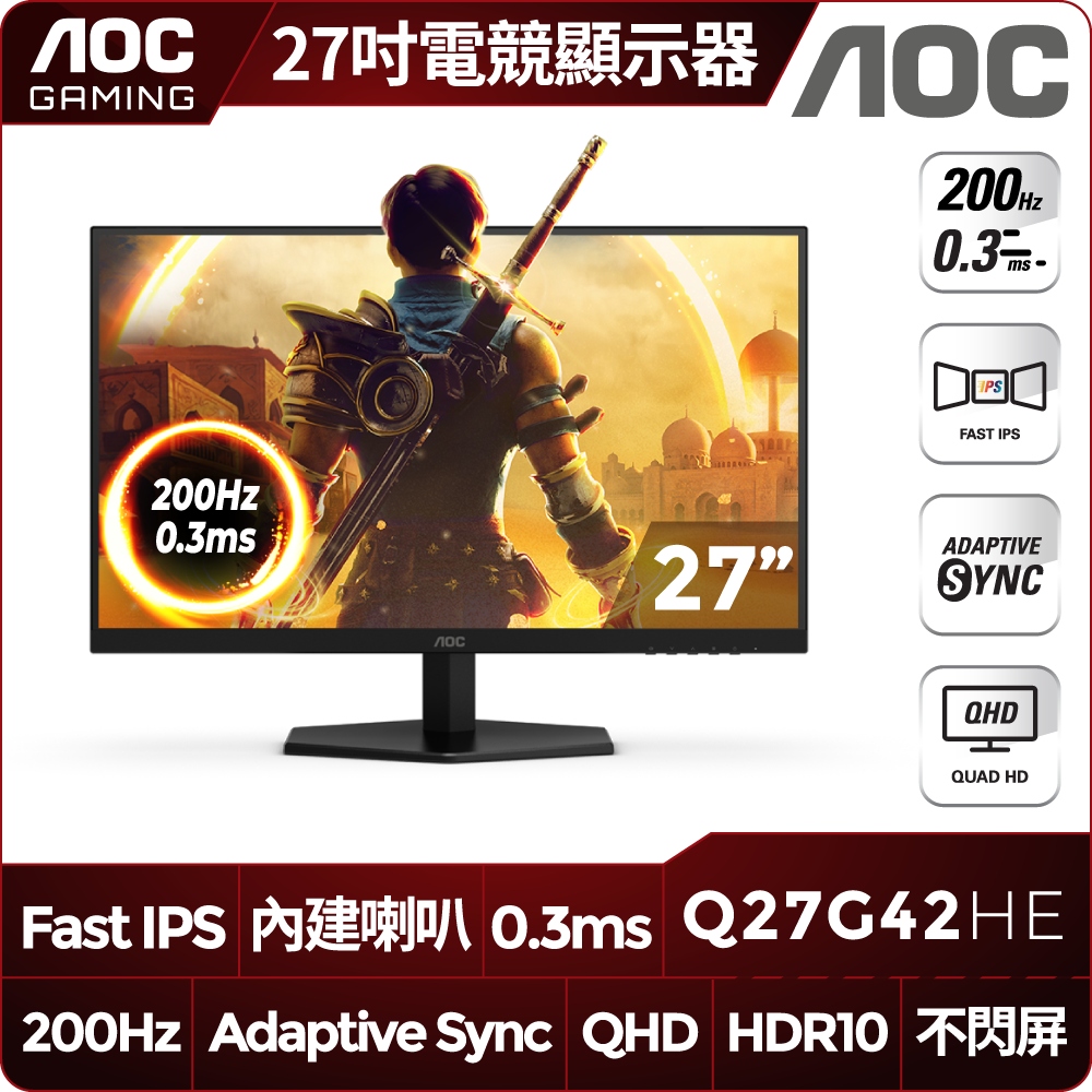 AOC Q27G42HE(2H1P/IPS/200Hz/含喇叭/HDR10)平面電競顯示器