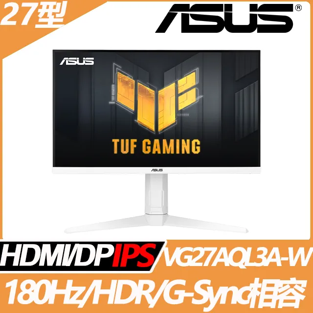 華碩 TUF Gaming VG27AQL3A-W(2H1P/IPS/180Hz/含喇叭/HDR400/白色)顯示器