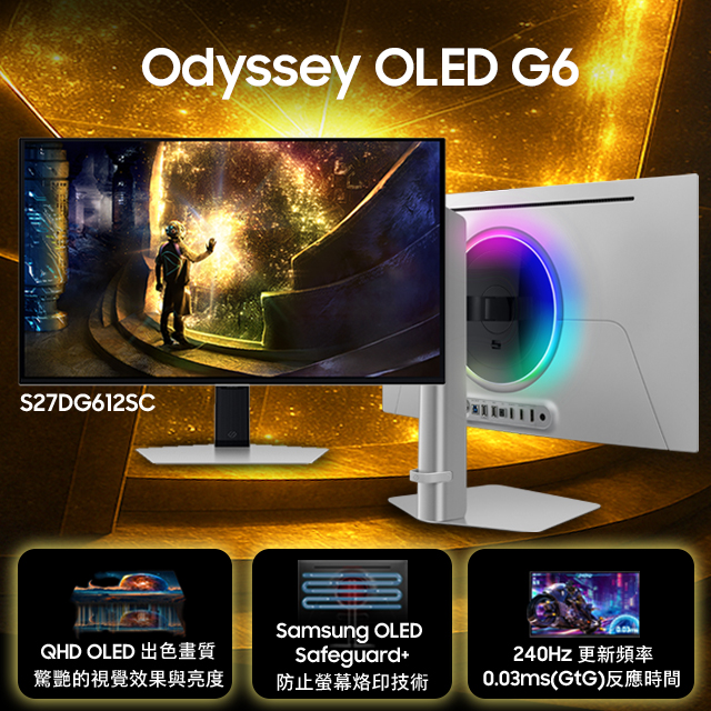 三星 Odyssey G6 S27DG612SC(2H1P/OLED/240Hz/HDR10/HDMI 2.1)可升降旋轉顯示器