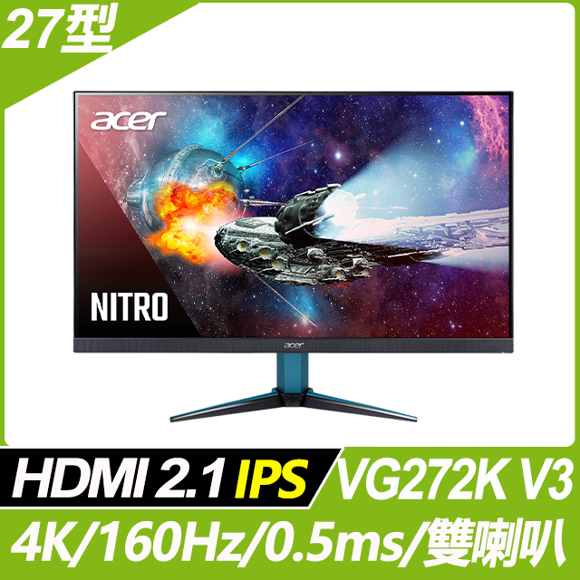Acer Nitro VG272K V3(2H1P/IPS/含喇叭/HDR400/HDMI 2.1)電競顯示器