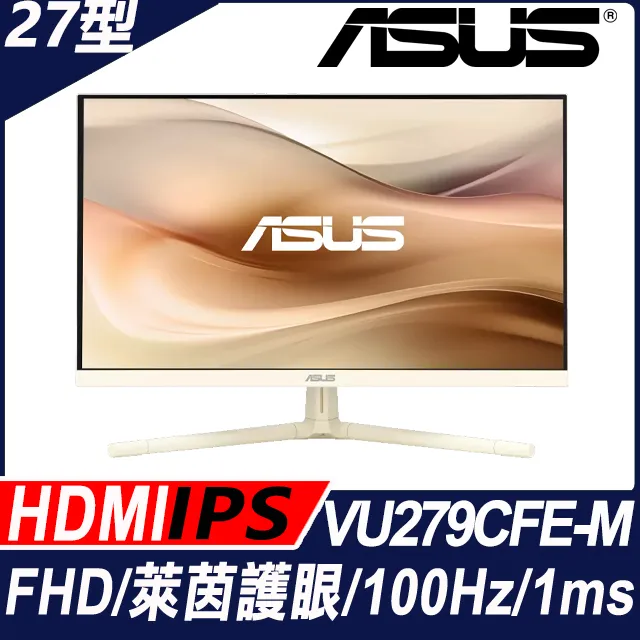 華碩 VU279CFE-M(1H1C/IPS/100Hz/燕麥奶色)護眼顯示器