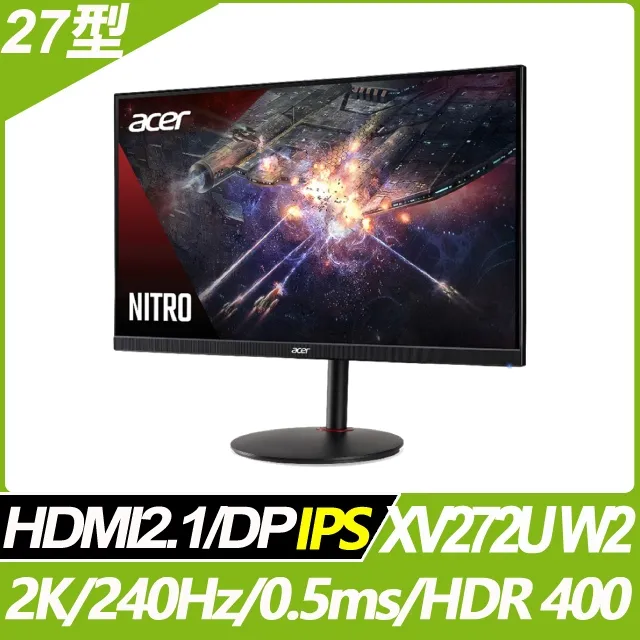 Acer Nitro XV272U W2(2H1P/IPS/240Hz/含喇叭/HDR400/HDMI 2.1)可昇降旋轉顯示器