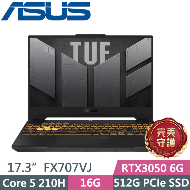 華碩 TUF Core 5 210H/RTX3050/16G/512G/17吋 灰 FX707VJ-0022A210H