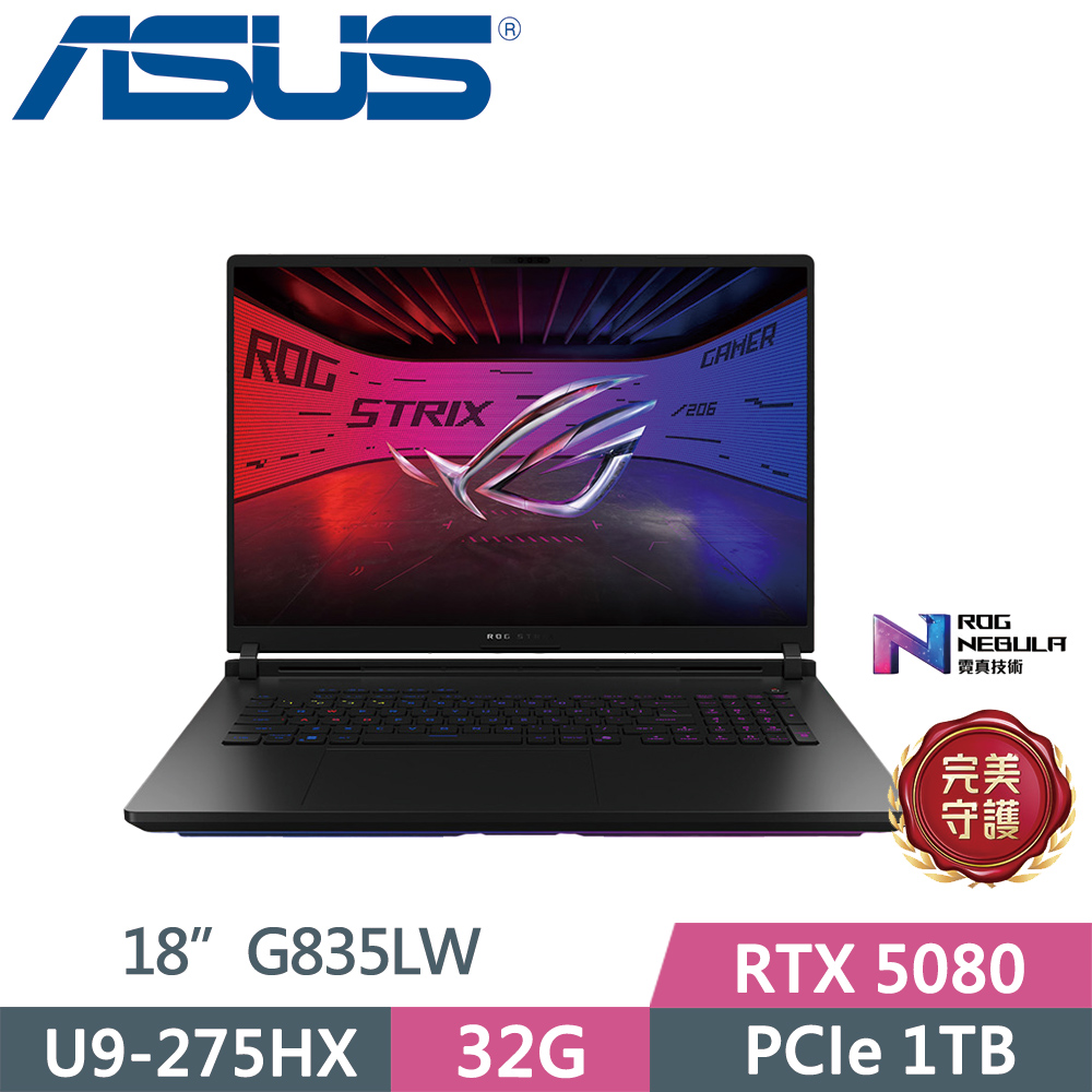 華碩 ROG Ultra 9-275HX/RTX5080/32G/1T/18吋 闇夜黑 G835LW-0021A275HX-NBLM