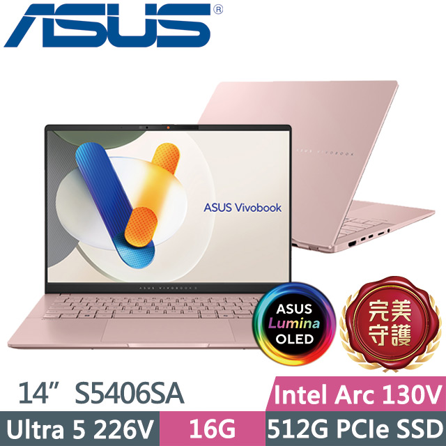 華碩 Vivobook Ultra 5-226V/16G/512G/14吋 玫瑰金 S5406SA-0078C226V