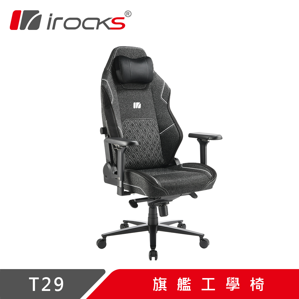 irocks T29 旗艦工學電競椅(黑色)/4D/寬版坐墊/彈性針織布面/防水/防污/防油/磁吸記憶棉頸枕