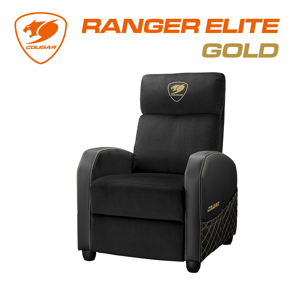 Cougar Ranger Elite Gold 電競椅-沙發/天鵝絨布料/側邊收納袋/三段式可調整傾斜角度