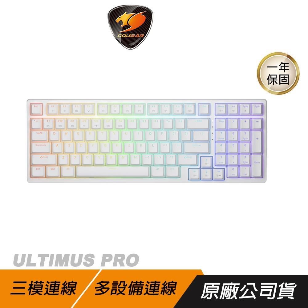 Cougar Ultimus Pro 三模鍵盤(白)/有線/無線/藍牙/98%布局/中文/紅軸/插拔軸