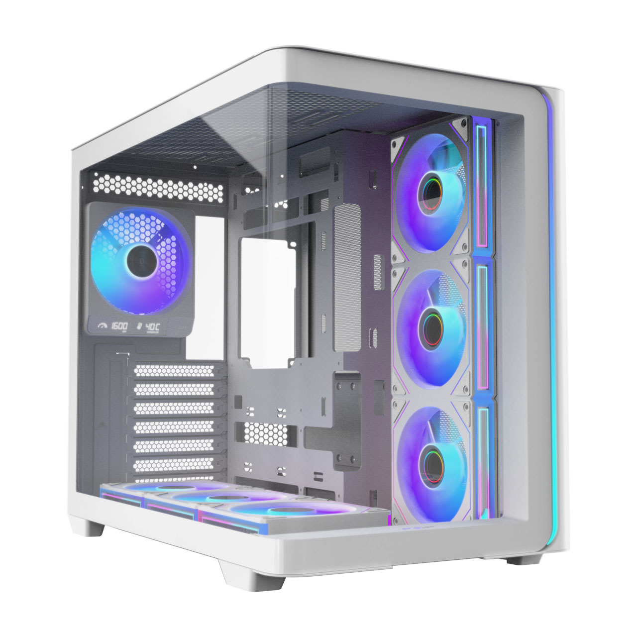 全漢 M580 PRO-WA(白) 顯卡44.5/U高16/全景曲面玻璃/數顯後風扇/背插/分艙設計/ATX