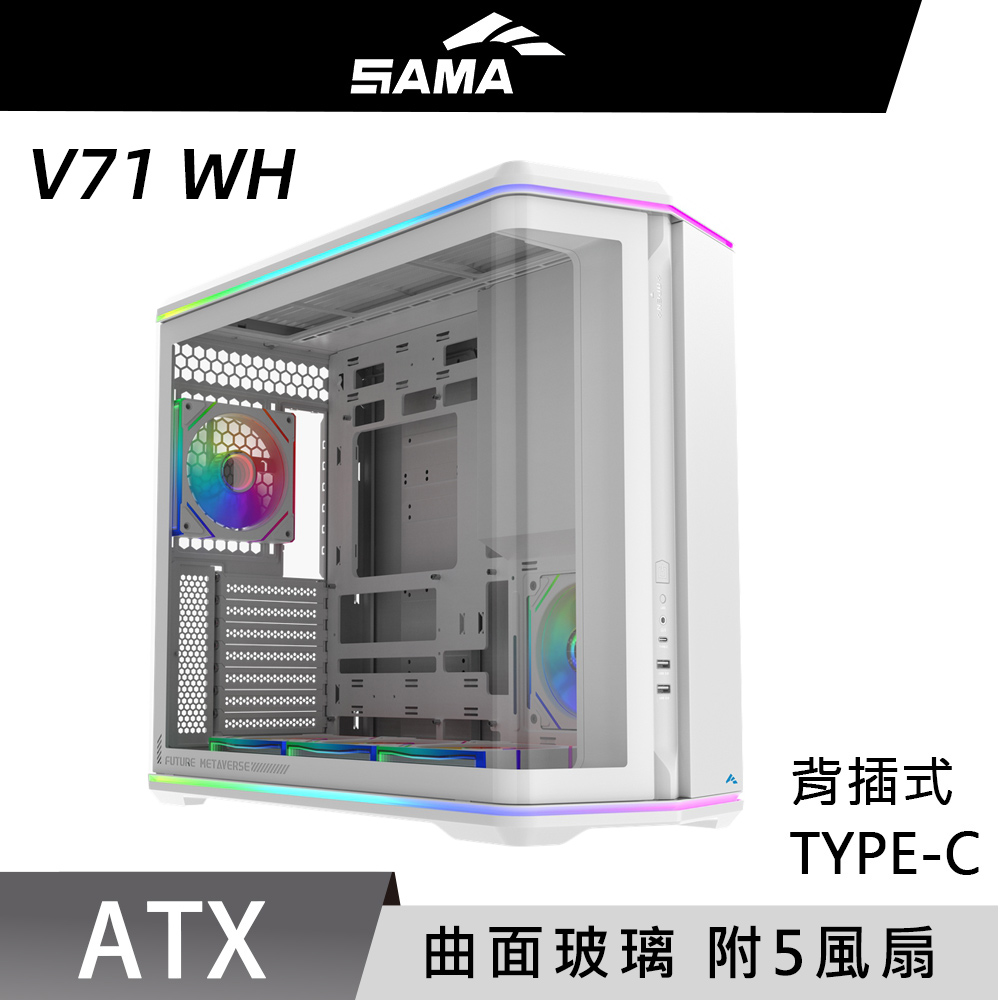SAMA V71 白 顯卡長41/CPU高16.5/曲面全景玻璃/分艙設計/支援背插/ATX