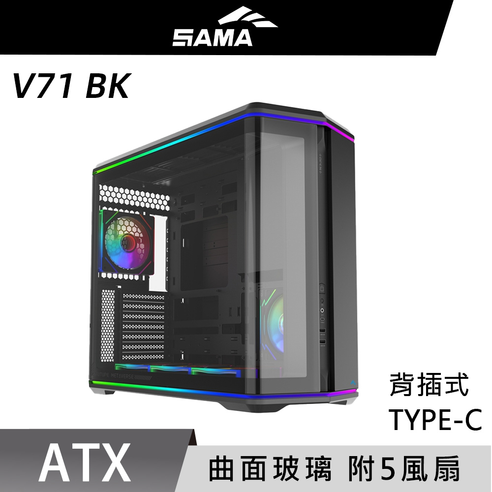 SAMA V71 黑 顯卡長41/CPU高16.5/曲面全景玻璃/分艙設計/支援背插/ATX