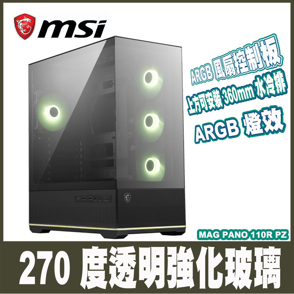 微星 MAG PANO 110R PZ 黑 顯卡長40/CPU高16/全景玻璃透側/支援背插/ATX