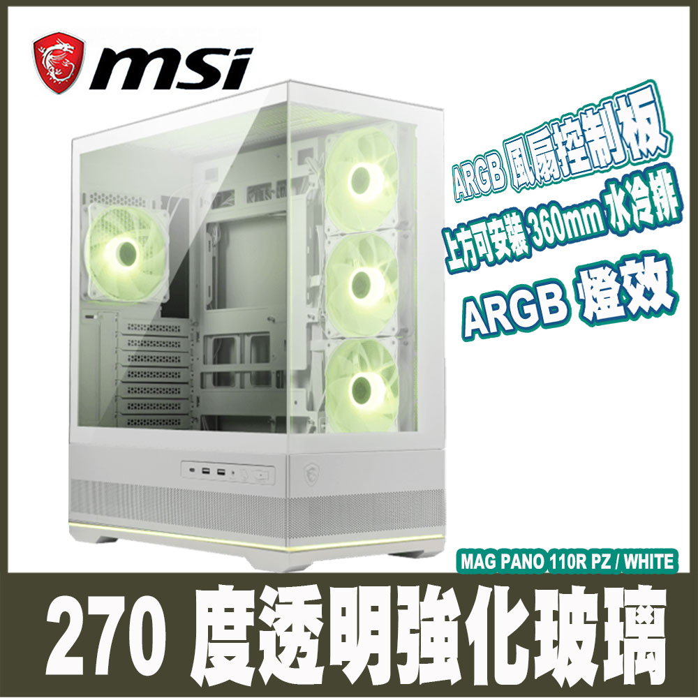 微星 MAG PANO 110R PZ 白 顯卡長40/CPU高16/全景玻璃透側/支援背插/ATX