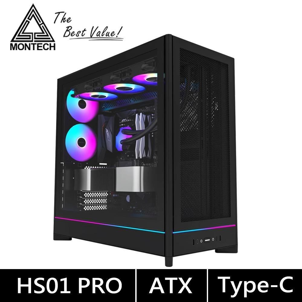 Montech HS01 PRO 黑 卡40/U高17/可翻轉機身/下沉式風扇/前網+玻璃透側/背插/ATX