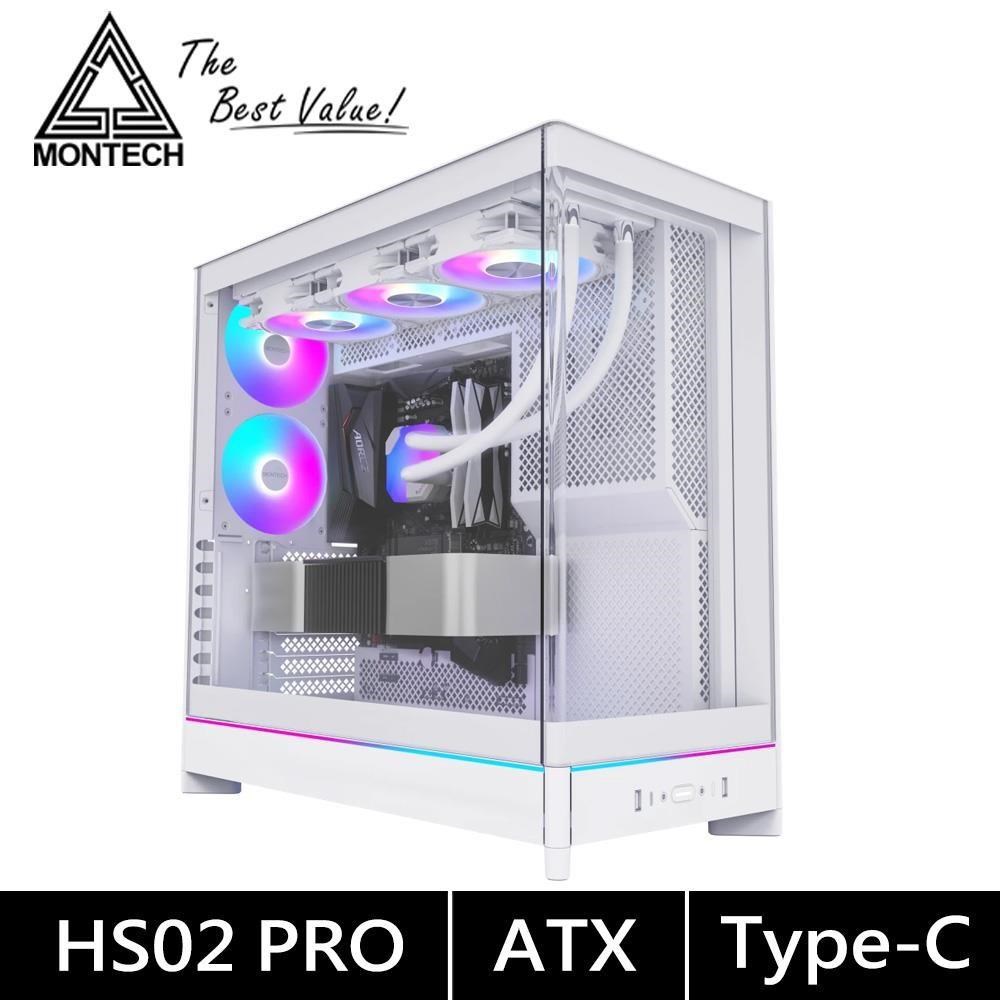 Montech HS02 PRO 白 卡42/U高17.5/可翻轉機身/下沉式風扇/全景玻璃透側/背插/ATX