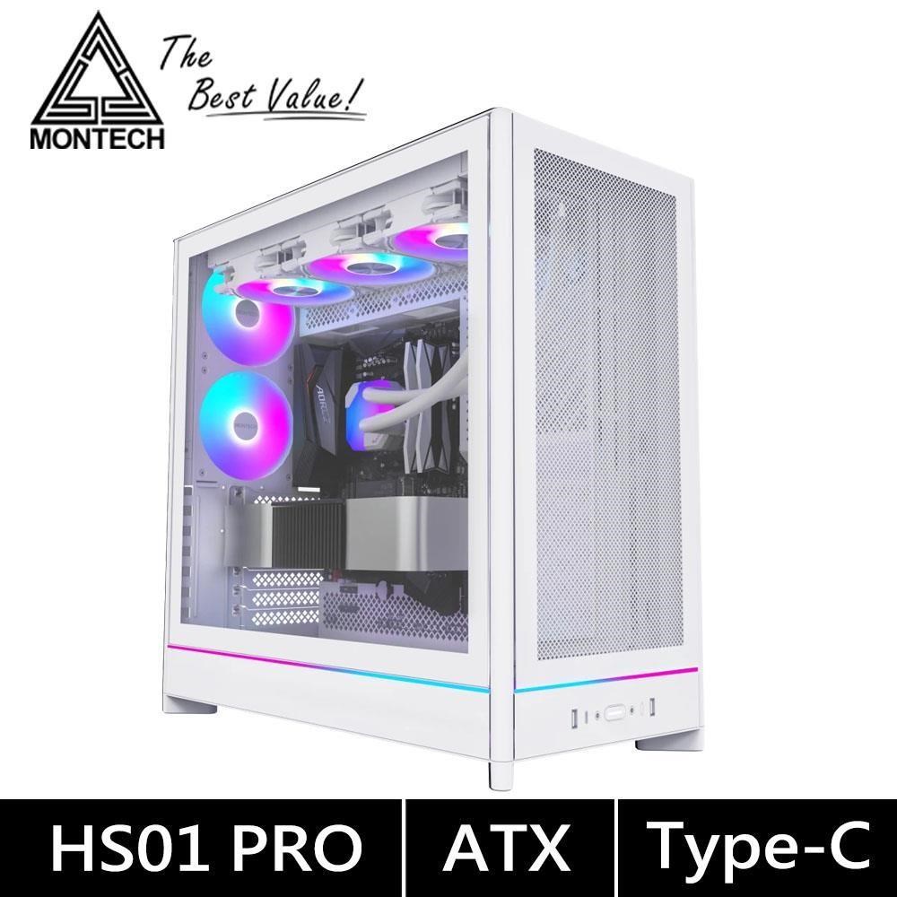 Montech HS01 PRO 白 卡40/U高17/可翻轉機身/下沉式風扇/前網+玻璃透側/背插/ATX