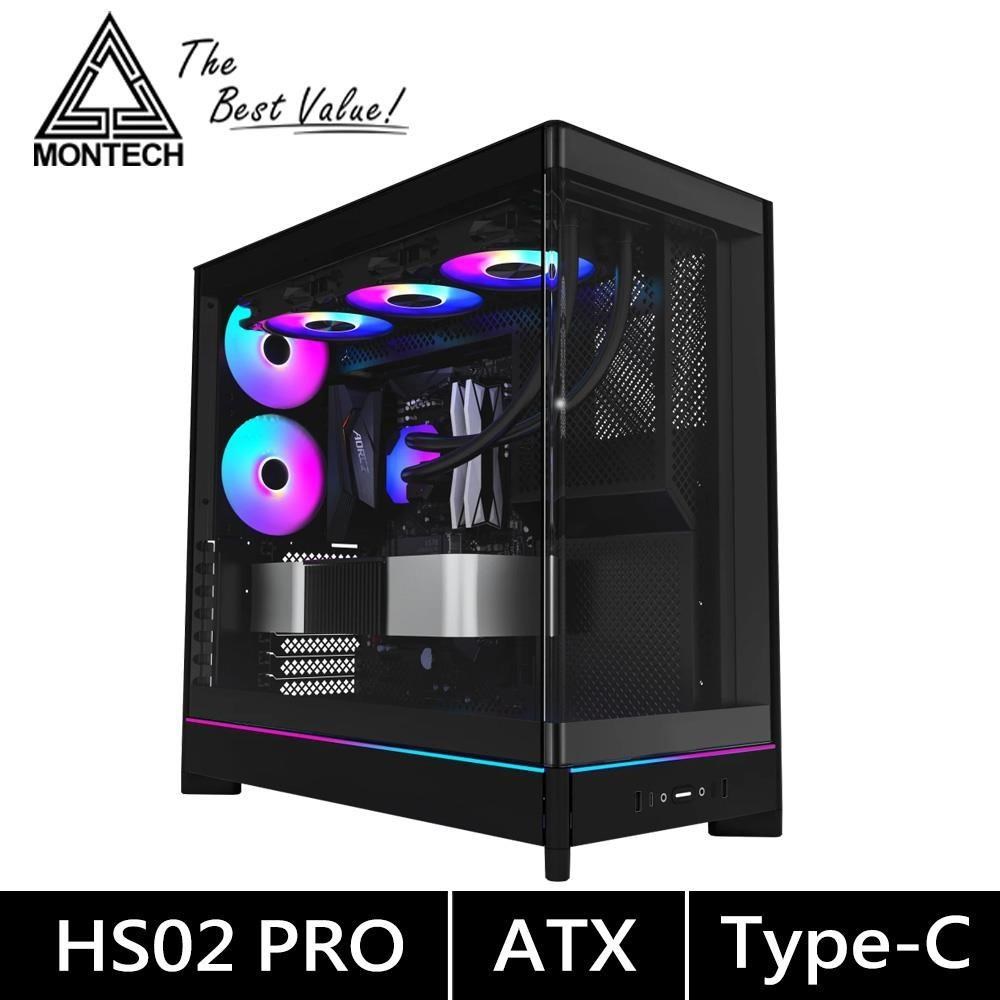 Montech HS02 PRO 黑 卡42/U高17.5/可翻轉機身/下沉式風扇/全景玻璃透側/背插/ATX