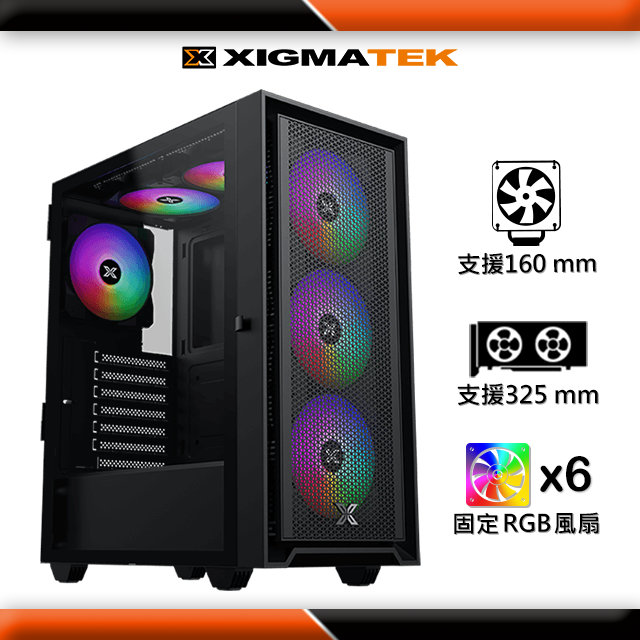 Xigmatek 富鈞 XTK-Z 黑(ATX/內建風扇前3上2後1/RGB固定光/顯卡325mm/塔散160mm)玻璃透側機殼