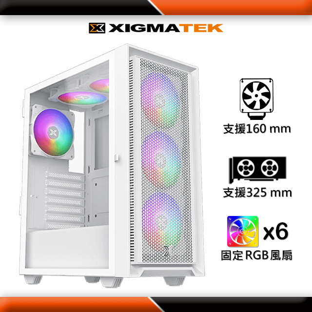 Xigmatek 富鈞 XTK-Z ARCTIC 白(ATX/內建風扇前3上2後1/RGB固定光/顯卡325mm/塔散160mm)玻璃透側機殼