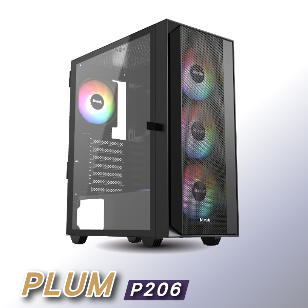 ⚡Mavoly 松聖 PLUM-P206 黑(ATX/顯卡300mm/內含定光風扇*12)玻璃側板機殼