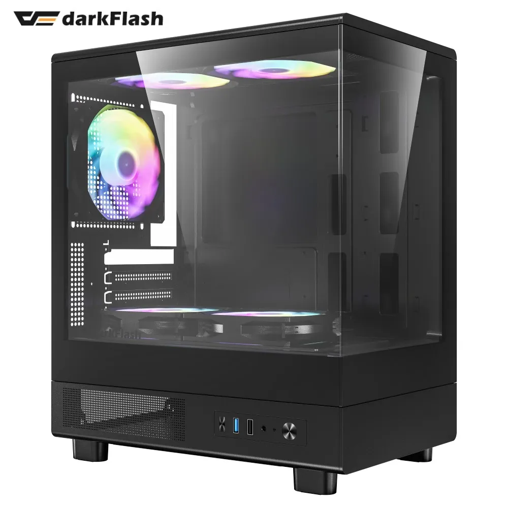darkFlash MOTI mini 黑 顯卡長30.5/U高18/定光RGB扇*5/全景玻璃透側/M-ATX