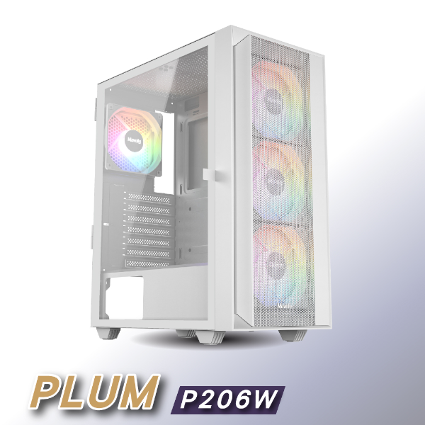 Mavoly 松聖 PLUM-P206 白(ATX/顯卡300mm/內含定光風扇*12)玻璃側板機殼