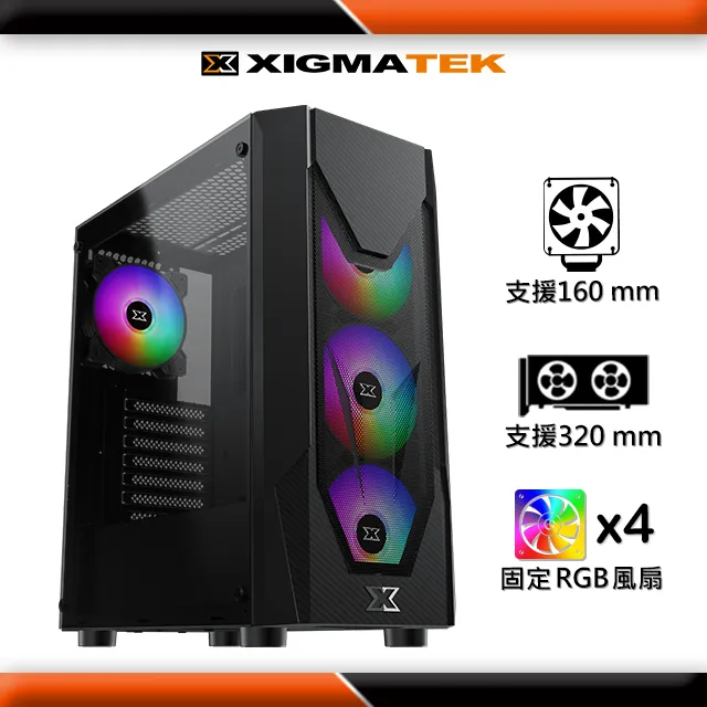 Xigmatek 富鈞 Starship RGB 黑(ATX/內建炫彩固光風扇前3後1/顯卡320mm/塔散160mm/水冷240mm)玻璃透側機殼