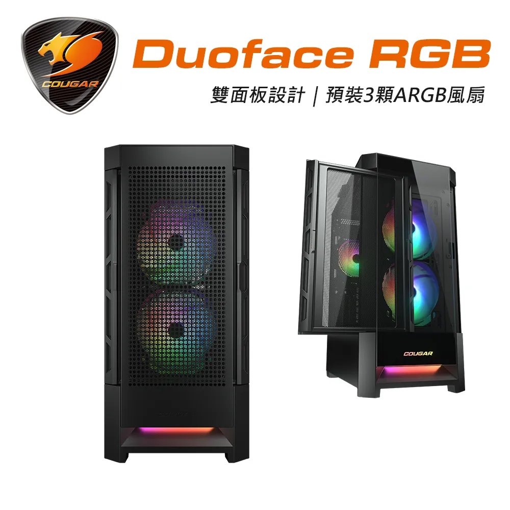 COUGAR Duoface RGB 黑 卡33/U高19/雙面板/Logo燈效/玻璃透側/E-ATX