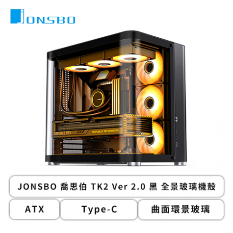 喬思伯 TK-2 V2 黑 顯卡長40.5/CPU高16.5/雙折彎環形玻璃/支援背插/ATX
