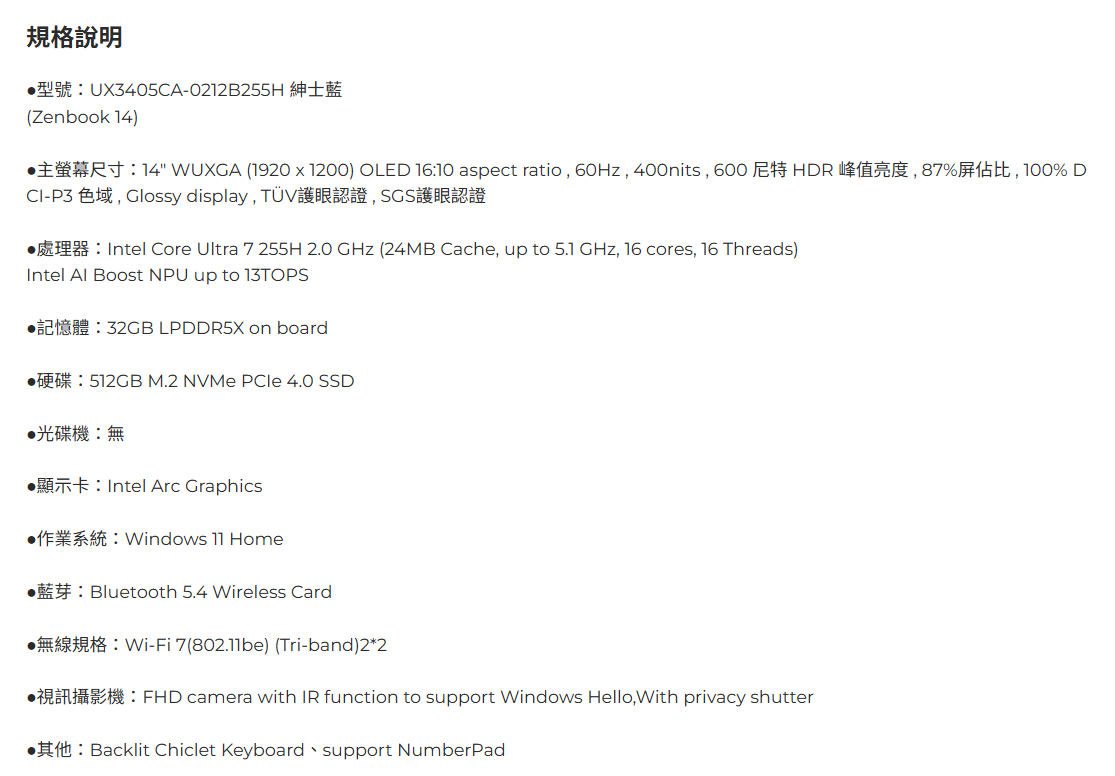 ✦ Intel Core Ultra 7 255H, 16核心✦ 87% 屏佔比║32GB║512G SSD✦ NumPad║PD充電║背光鍵盤