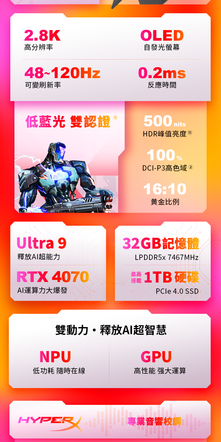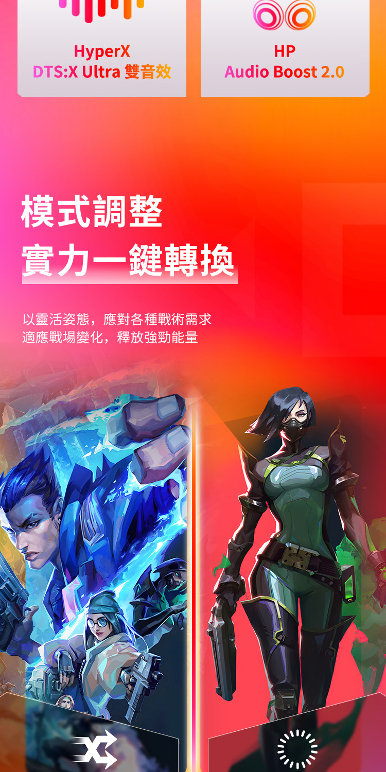 喇叭/音效技術:HyperX / Dual Speakers ,支援 HP Audio Boost 2.0 (w/ discrete amplifier solution)/ DTS X: Ultra 音校技術
